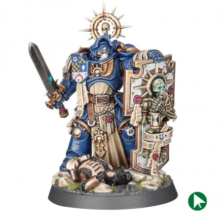 Ce kit plastique permet d’assembler un Capitaine Space Marine portant un bouclier relique, un puissant commandant de l’Adeptus Astartes.