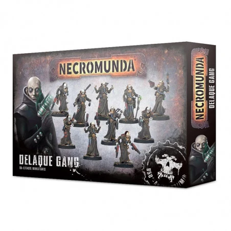 Cette boßte contient 10 figurines plastique de gangers Delaque à assembler, ainsi que 10 socles Necromunda de 25mm. Les rÚgles de votre gang Delaque se trouve dans le livre Gangs du Sous-monde ainsi que dans le numéro de décembre 2018 de White Dwarf.