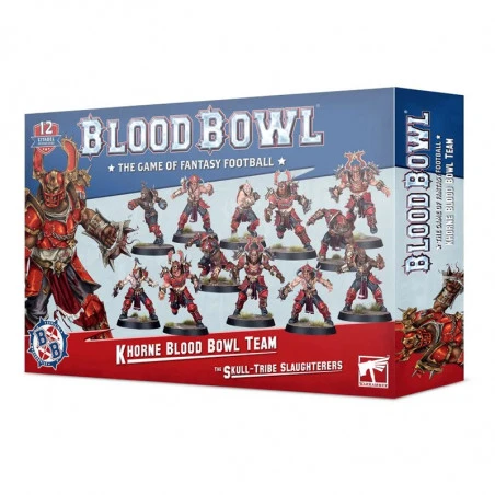 Le kit se compose de 64 pièces plastique avec lesquelles vous pouvez assembler les Skull-tribe Slaughterers, une équipe de Khorne à utiliser dans vos matchs de Blood Bowl. L’équipe est composée de 6 Bloodborn Marauder Linemen, 4 Bloodseekers, et 2 Khorngors. Cette boîte contient 2 pièces Blood Bowl double face, 2 pions de tour et de relance, 4 ballons de Blood Bowl, et une feuille de décalcos de 222 symboles et icônes pour personnaliser votre équipe. Ce kit est également fourni avec 12x socles ronds à fente Citadel de 32mm.