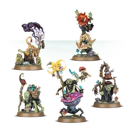 Grâce à ce kit, vous pouvez monter tout un Gobbapalooza – un concile de Grots qui propose à votre armée un large éventail de tours à jouer. Pris ensemble mais déployés séparément, ses membres ont chacun des aptitudes uniques et puissantes. Vous trouverez là cinq héros: