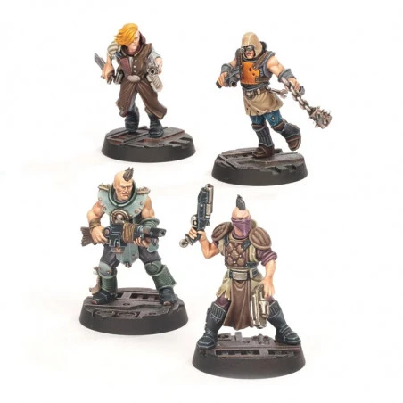Cette boîte vous permet d’assembler 4 figurines plastique à ajouter à votre gang d’Outcasts ou de Maison, avec un large éventail d’options de personnalisation, dont 10 armes et 8 têtes différentes.