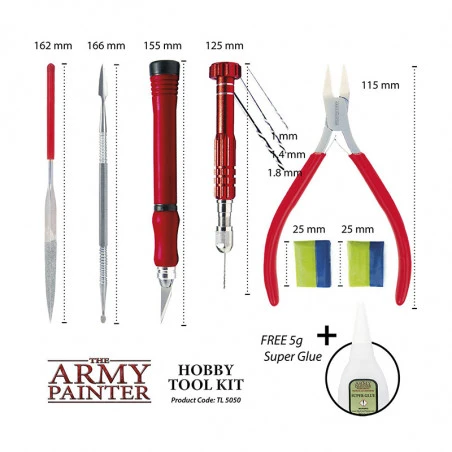 Il comprend également une colle Super Glue 5g gratuite ainsi qu’un guide sur la sécurité des outils et le guide de peinture Army Painter Technique Painting Guide.