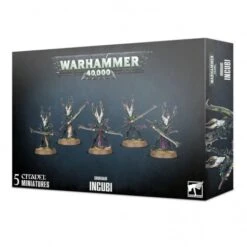 Ce kit est fourni en 68 composants plastique plus 5 socles ronds Citadel de 28,5mm et un socle rond Citadel de 25mm. Il permet d’assembler 5 Incubi ou 4 Incubi et un Klaivex. Le Klaivex peut être monté avec une paire de demiklaives rattachés ou séparés, et il dispose de deux têtes au choix. Le kit comprend aussi un symbole Drukari monobloc qui peut à votre guise servir de pion objectif.