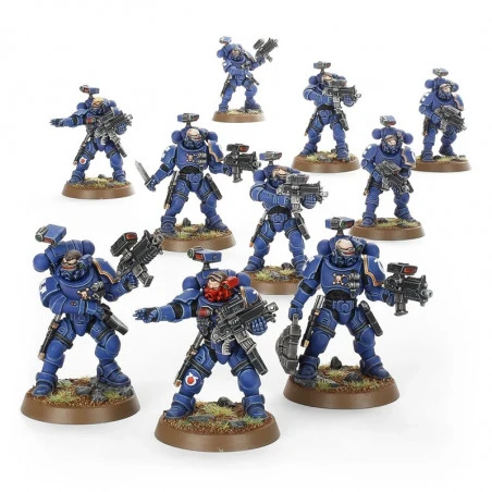 Chaque Infiltrator est armé d’une carabine bolter d’élite et porte une armure Mark X Phobos dotée de nombreuses poches pour son matériel d’infiltration. Des pièces en plus sont incluses pour assembler deux Sergeants et jusqu’à deux figurines dotées d’un dispositif de communications.