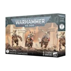 Ce kit en plastique permet d’assembler trois Saccageurs Krootox, des bêtes parentes kroots belliqueuses chevauchées au combat par d’intrépides guerriers extraterrestres.