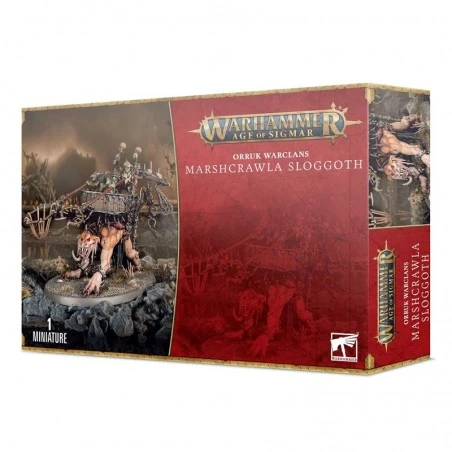 Ce kit plastique en 43 composants permet d’assembler un Sloggoth des Marais complet, avec son howdah qu’occupent de cruels et malicieux grots. Il y a plusieurs options d’assemblage, avec deux têtes de Sloggoth et un choix de filets et de piques pour deux memebres d’équipage, ce qui est bienvenu si vous souhaitez aligner plusieurs versions de ces bêtes répugnantes. Le kit inclut aussi un socle ovale Citadel de 105mm x 70mm. Cette figurine est fournie non peinte et nécessite assemblage – nous recommandons d’employer la Colle Plastique Citadel et la peinture Citadel.