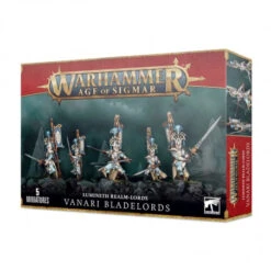 Ce kit plastique en 48 composants permet d’assembler 5 Vanari Bladelords, avec l’option d’en promouvoir un en tant que Seneschal masculin ou fĂ©minin avec grande lame de mĂ©tal solaire ou lames doubles de mĂ©tal solaire. Figurines fournies avec 5x socles ronds Citadel de 32mm.